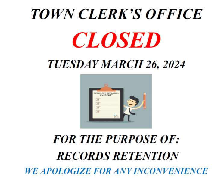 Town Clerk's Office Closed, 3/26/2024 - Town of Warwick