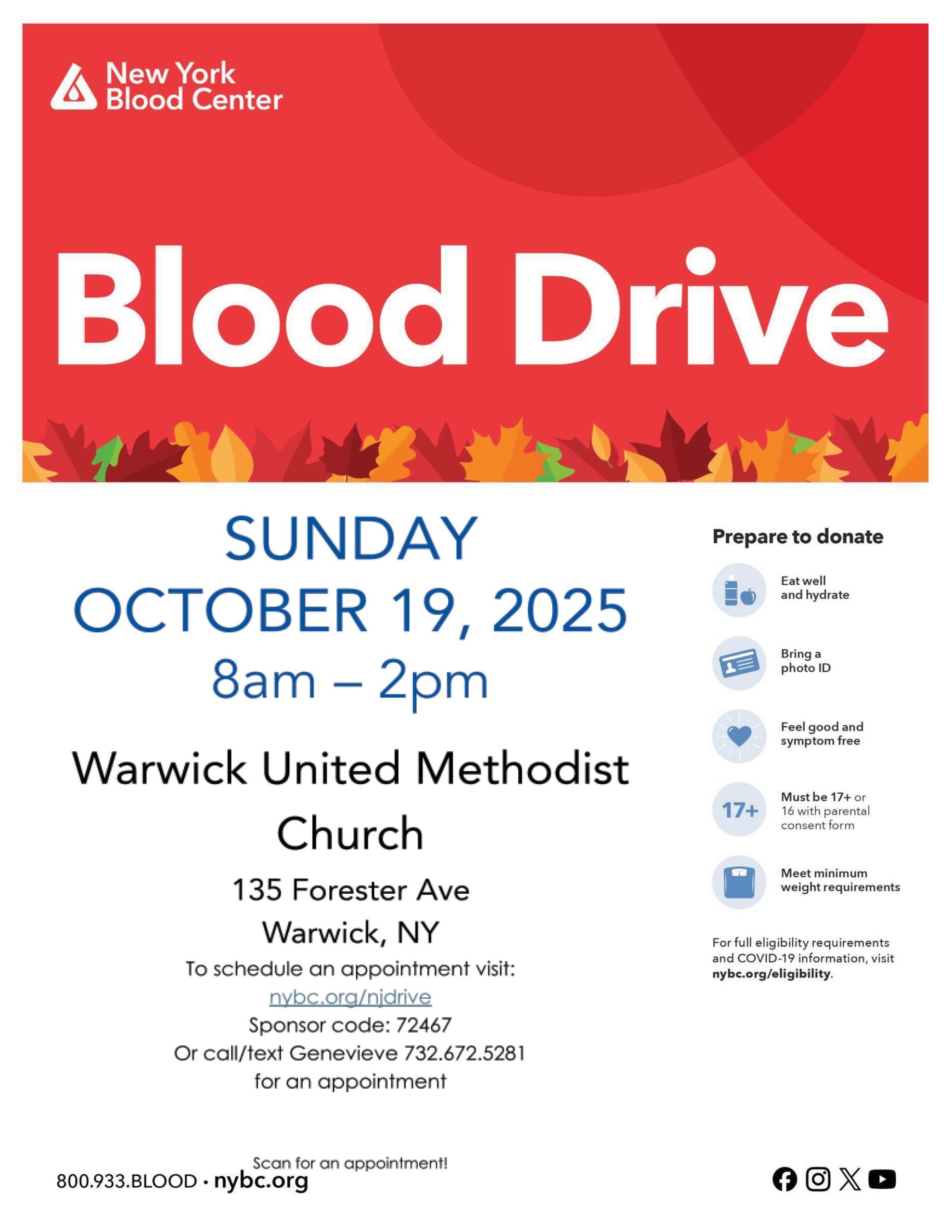 Blood Drive - Oct 19th - Town of Warwick