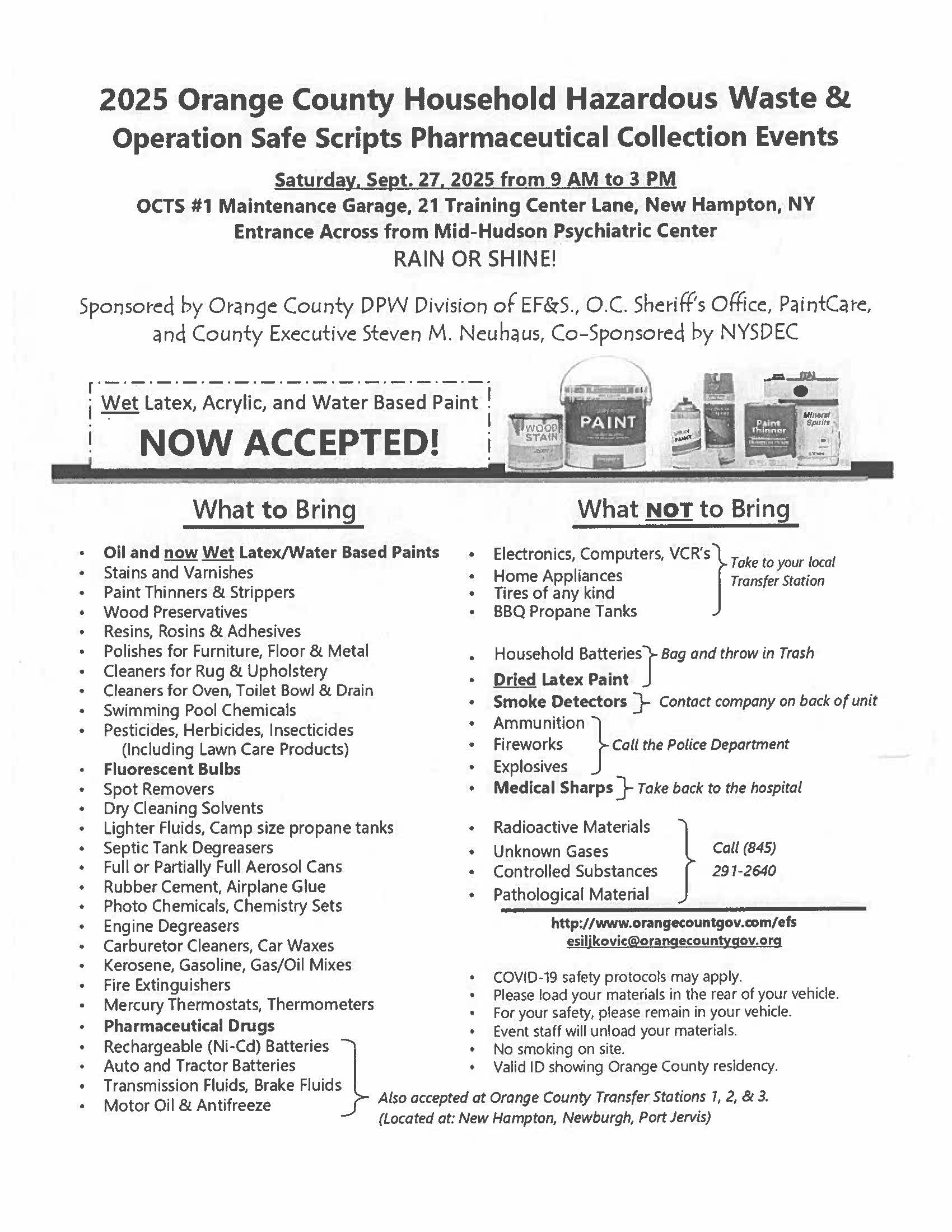 Hazardous Waste event Sept 2025 - Town of Warwick